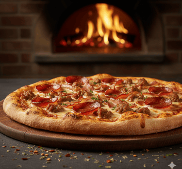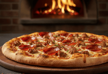 A hearty pizza loaded with pepperoni, Italian sausage, beef, and turkey ham for the ultimate meat experience.